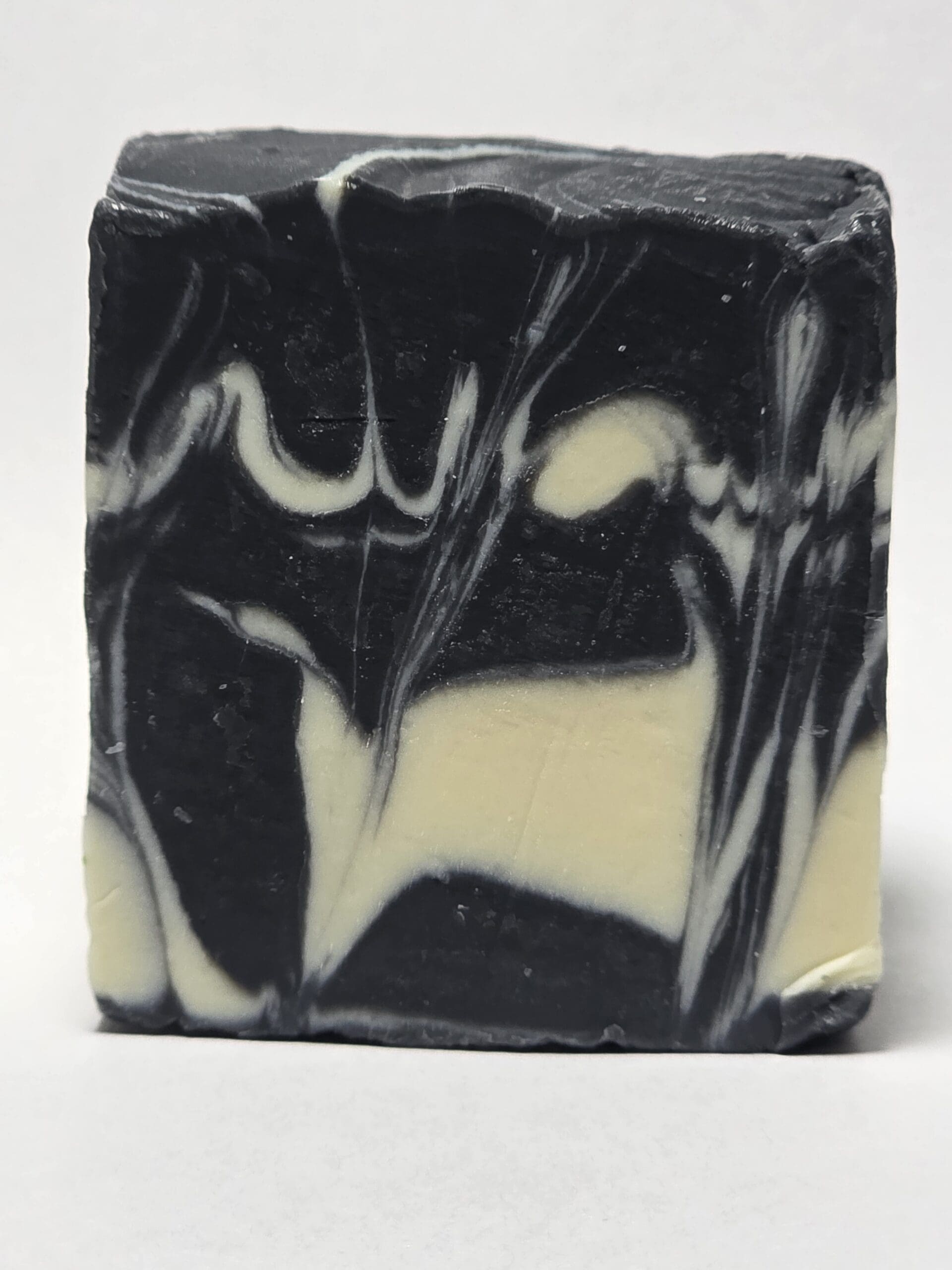 Ingredients: Organic Olive Oil, Organic Coconut Oil, Organic Aloe Vera Juice, Food-Grade Sodium Hydroxide, Organic Mango Butter, Phthalate-Free Fragrance Oil, Activated Charcoal, Titanium Dioxide.